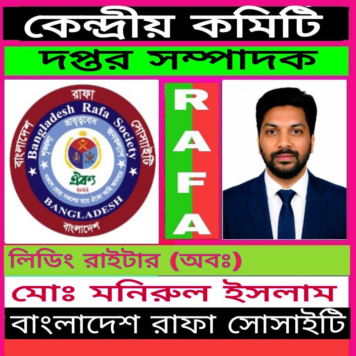 অবসরপ্রাপ্ত সশস্ত্র বাহিনীর সদস্যদের সংগঠন ‘Bangladesh Rafa Society (রাফা)’-এর কেন্দ্রীয় কমিটিতে দপ্তর সম্পাদক পদে নতুন নিয়োগ